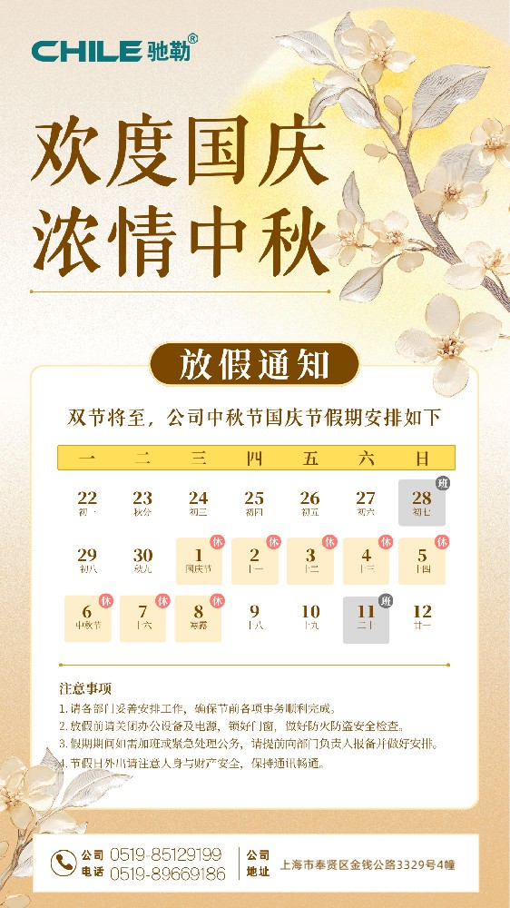 上海馳勒祝大家國慶中秋快樂!